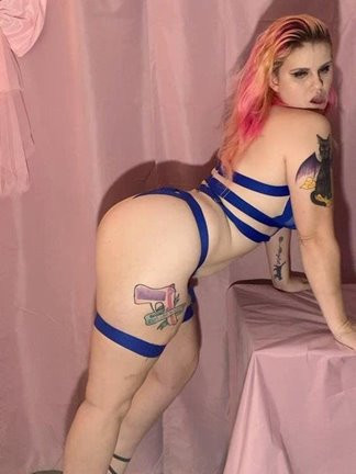 Lightly alternative - pink hair and colourful tattoos.