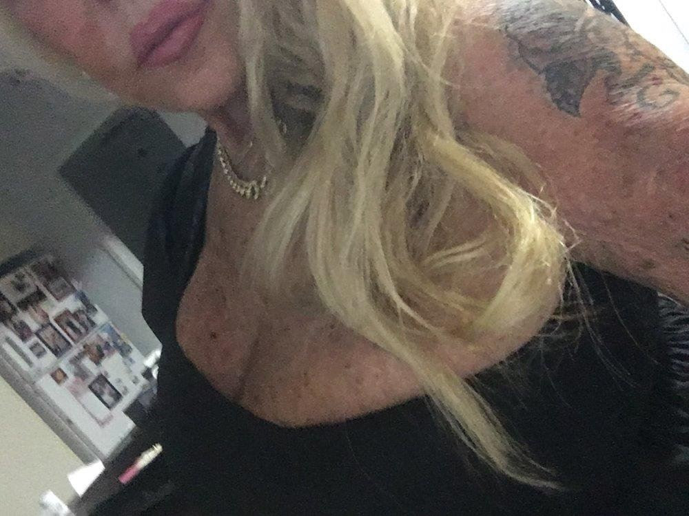 I'm a sexy mature stunning Blonde. I'm fit, size 10, shaven & tanned with hugh perky 50 F cup breasts. They love lots of attention & I love to slide them all over you. I love to wear sexy Lingerie.